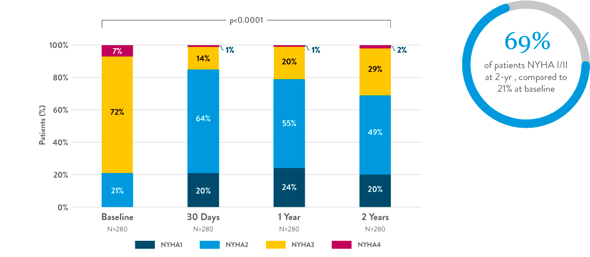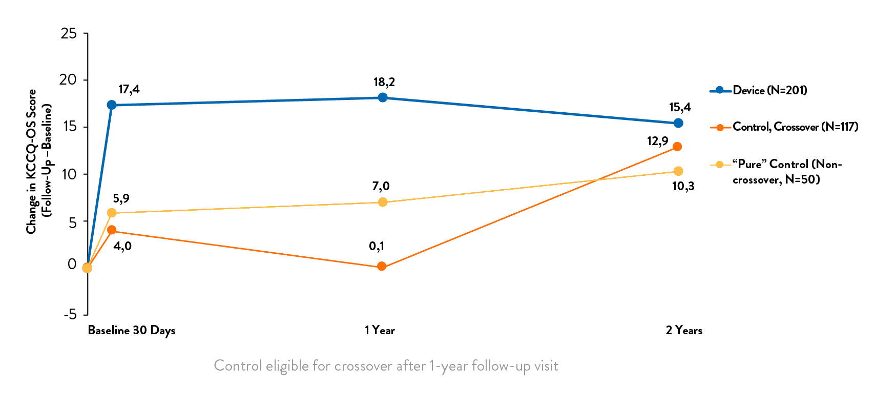 ≥10-point KCCQ-OS score improvement was observed in 50% of subjects at three years.11