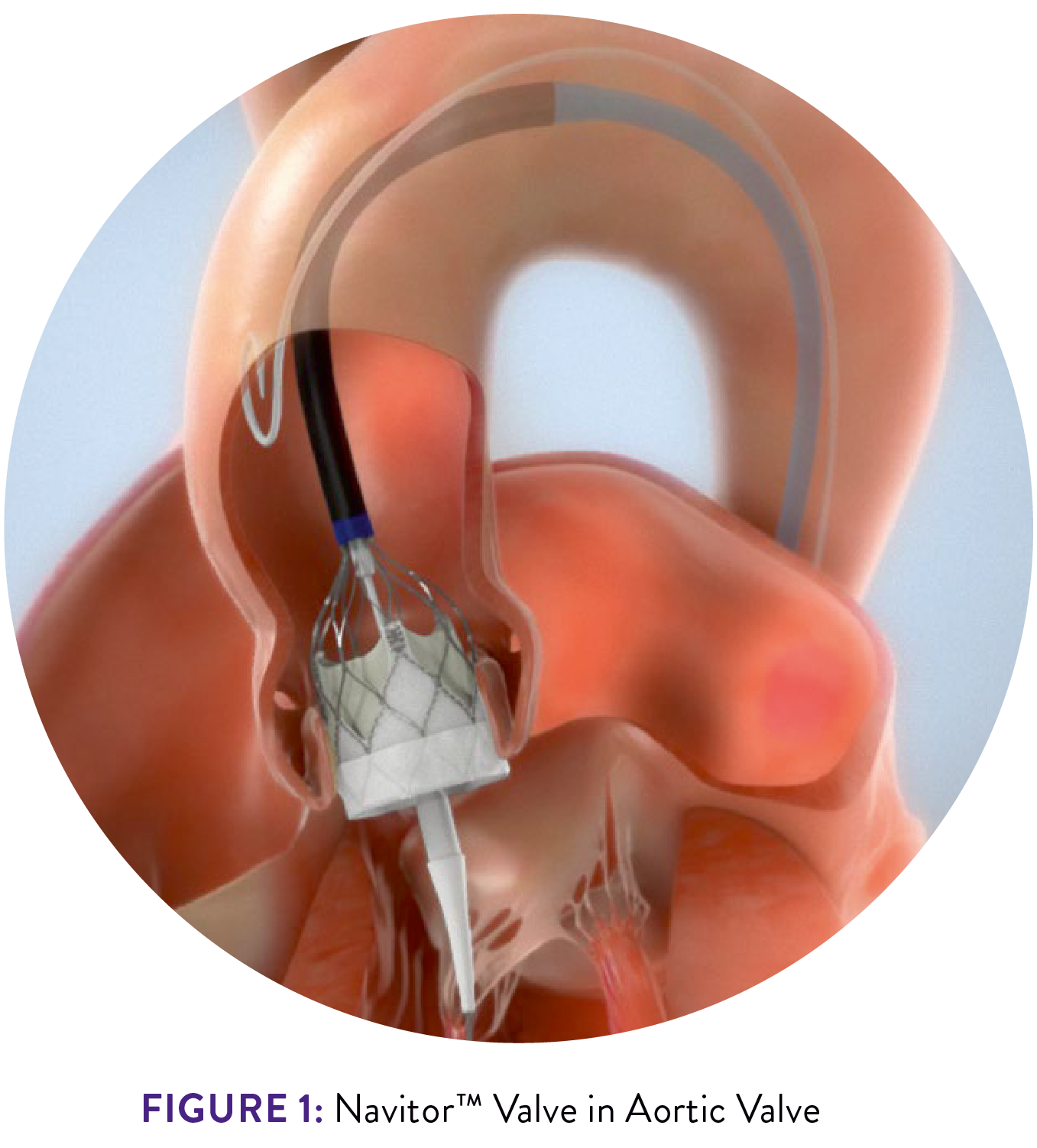 Through transfemoral, subclavian or axillary access methods, the Navitor valve will be introduced in the patient’s body using the FlexNav delivery system. The delivery system design facilitates gradual, controlled deployment of the valve. Controlled movement of the sheath will be viewed through cardiac fluoroscopic imaging.