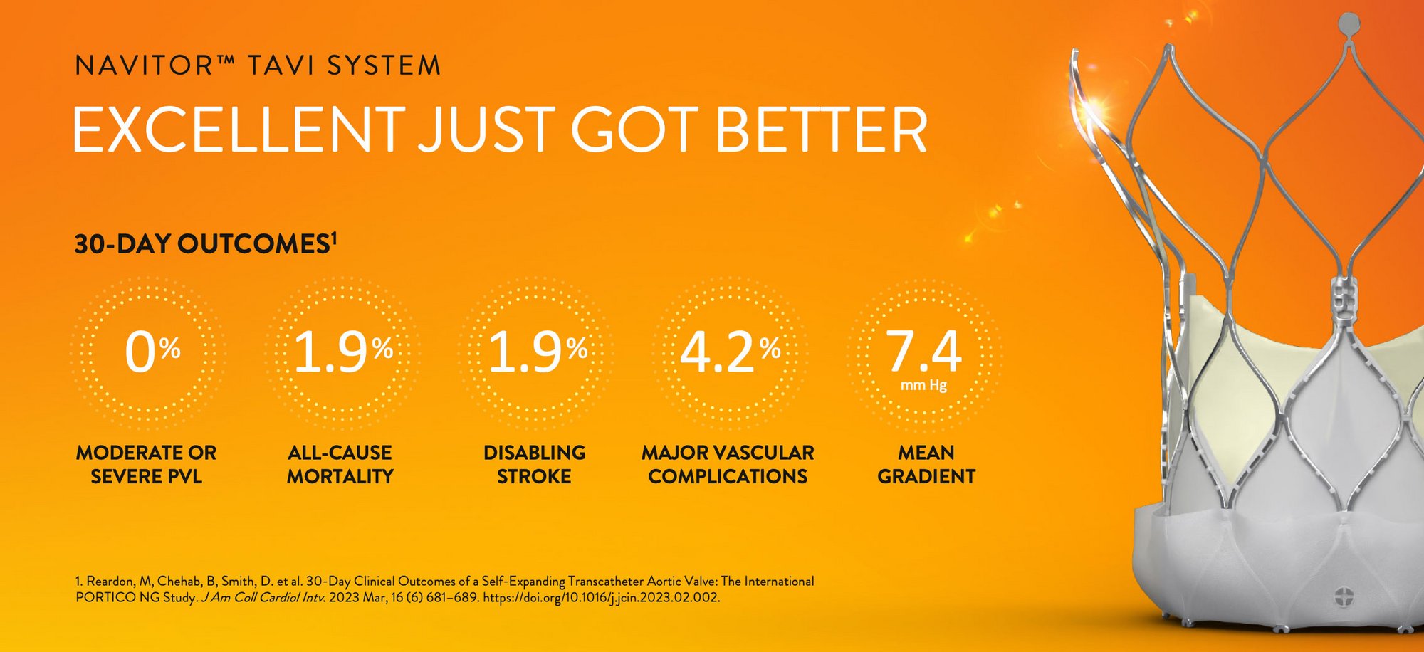The 30-day clinical outcomes of the Navitor TAVI System highlight its advanced design and its role in providing a safe, effective treatment option for those at high or greater risk for traditional surgery, emphasizing its precision and the minimized risk of complications associated with the procedure.